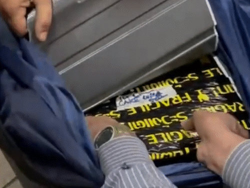 बैग में 4 किलो के आठ पैकेट मिले दो दिन बाद, उसका एक बैग मिला, जिसकी कस्टम विभाग द्वारा जांच की गई, लेकिन उसमें कुछ भी आपत्तिजनक नहीं मिला। दूसरे दिन दूसरे बैग मिला। कस्टम विभाग के एडिशनल कमिश्नर राम बिश्नोई समेत कस्टम अधिकारियों ने जब इस बैग की जांच की तो उसमें 4 किलो के आठ पैकेट मिले, जिनमें गांजा छिपाकर रखा गया था।