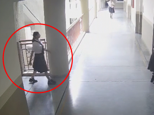 सीसीटीवी फुटेज में देखा जा सकता है कि छात्रा क्लास से बाहर आकर लॉबी की रेलिंग से नीचे छलांग लगा देती है। स्टूडेंट के पैर और सिर में गंभीर चोटें आई थीं और उसका एक प्राइवेट हॉस्पिटल के आईसीयू में इलाज चल रहा था।