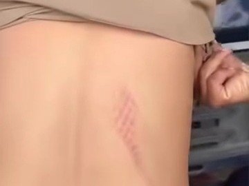 वीडियो में आरक्षक की पीठ पर बेल्ट के निशान दिख रहे हैं।