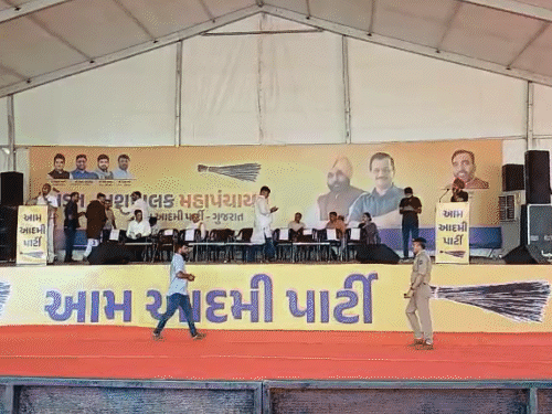 गुजरात के मोडासा शहर में आज आम आदमी पार्टी (आप) द्वारा विशाल किसान-पशुपालक महापंचायत का आयोजन किया गया है। इस मौके पर AAP के संयोजक अरविंद केजरीवाल और पंजाब के मुख्यमंत्री भगवंत मान भी गुजरात पहुंचे हैं। इस कार्यक्रम के लिए विशाल पंडाल और बैठने की व्यवस्था की गई है।