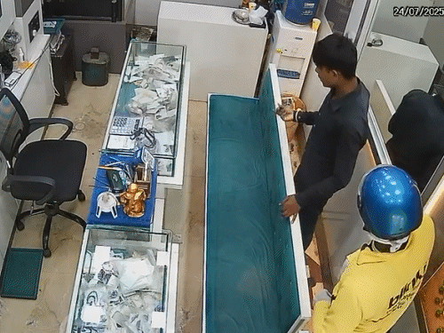फिर दुकान मालिक कृष्ण कुमार वर्मा का बेटा शुभम आता है, उसे कमर पर लगी पिस्टल दिखाई और उनसे भी हाथापाई की। डरा-धमकाकर वहां रखे सोने चांदी के जेवरात और नकदी दो बैग में भरी और भाग निकले।