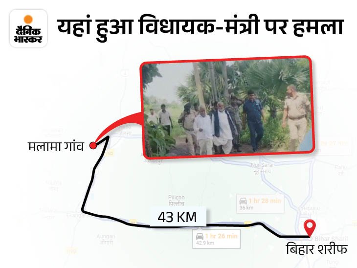23 अगस्त को पटना के फतुहा में हिलसा के 9 लोगों की सड़क हादसे में मौत हुई थी। विधायक और मंत्री मलामा गांव में पीड़ित परिवार से मिलने पहुंचे थे। मुलाकात के थोड़ी देर बाद दोनों नेता वहां से लौटने लगे।