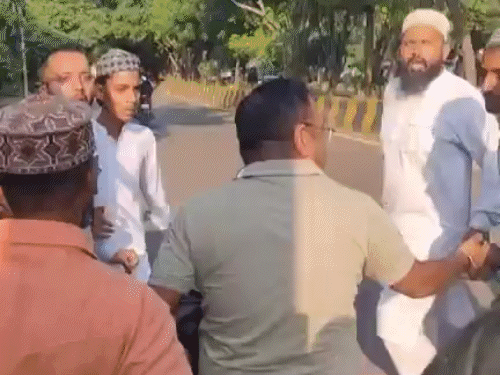 प्रेस क्लब चौक पर मुस्लिम पक्ष के लोग हिंदु पक्ष के सामने अल्लाह हू अकबर के नारे लगाने लगे।