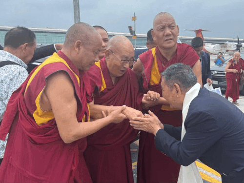 एयरपोर्ट पर तिब्बती समुदाय ने दलाईलामा का स्वागत किया।