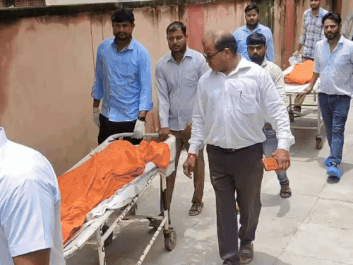 बच्चों के शव को झालावाड़ अस्पताल की मॉर्च्युरी में रखवाया गया ।