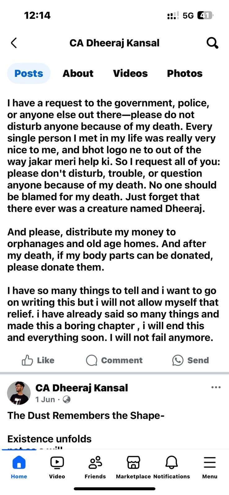 धीरज ने मरने से पहले अपने सोशल मीडिया पर लिखा, “जिनसे भी मैं जिंदगी मिला, वो सभी लोग बहुत अच्छे थे. हर एक इंसान मेरे प्रति बहुत दयालु था और फिर कुछ लोग ऐसे भी थे जिन्होंने सचमुच मेरी मदद की. मैं आज जो कुछ भी हूं, वो उनके बिना हासिल नहीं कर पाता.”