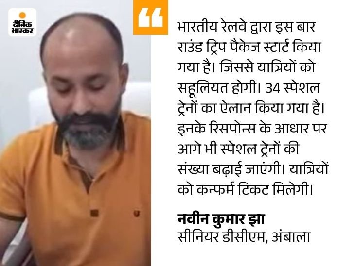 Aug 24, 2025 By Inder India News त्योहार पर रेलवे चलाएगी 34 स्पेशल ट्रेनें: 10 से ज्यादा राज्यों को फायदा, कंफर्म टिकट पर 20% छूट, राउंड ट्रिप में भी मिलेगी रियायत – Ambala News