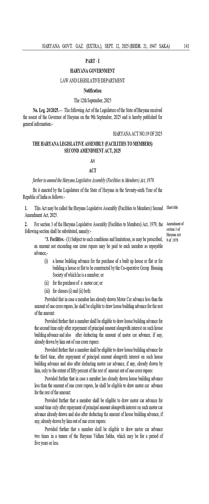 हरियाणा में विधायकों पर सरकार मेहरबान: कार-फ्लैट खरीदने के लिए देगी एक करोड़ का लोन; 10 हजार यात्रा भत्ता भी मिलेगा – Haryana News Sep 15, 2025 By Inder India News