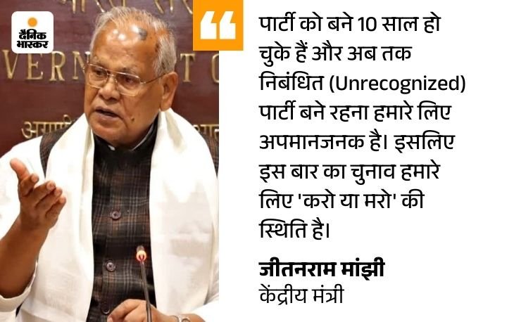 मांझी बोले- 20 सीटें नहीं मिलीं तो 100 पर लड़ेंगे: पार्टी की मान्यता के लिए 8 सीटें जरूरी, 20 पर लड़ेंगे तभी तो उतनी जीत पाएंगे – Bihar News Sep 14, 2025 By Inder India News