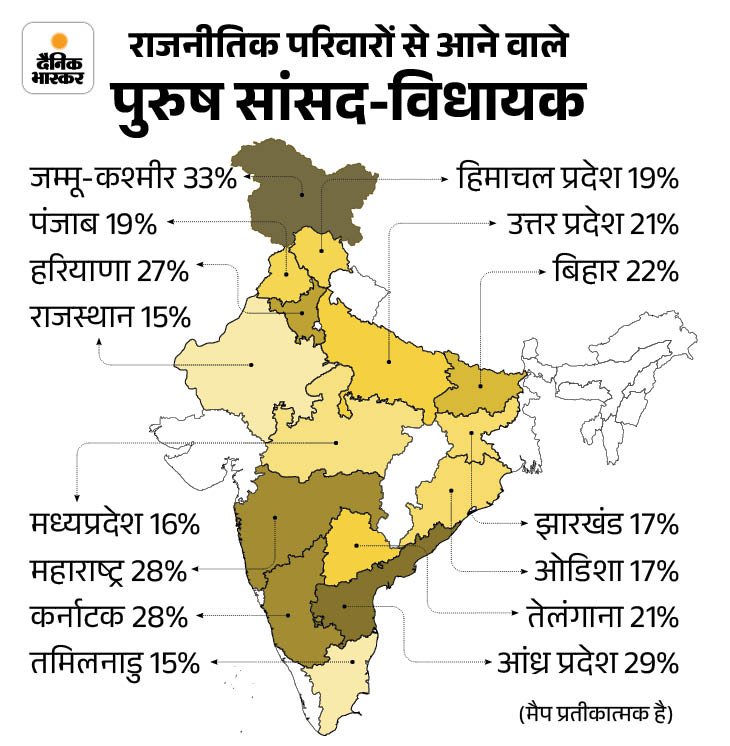 राजस्थान में हर पांचवां सांसद-विधायक राजनीतिक परिवार से: सिंधिया-कस्वां-मिर्धा परिवार की तीसरी पीढ़ी, हर दूसरी महिला MP-MLA को वंशवाद का फायदा – Rajasthan News Sep 14, 2025 By Inder India News