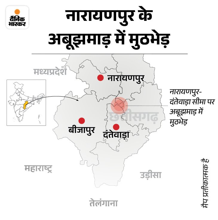 Sep 5, 2025 By Inder India News दंतेवाड़ा-नारायणपुर बॉर्डर पर एक महिला नक्सली ढेर: अबूझमाड़ के जंगलों में एनकाउंटर, DRG के जवानों ने घेरकर मारा, शव, राइफल और BGL लॉन्चर बरामद – Chhattisgarh News