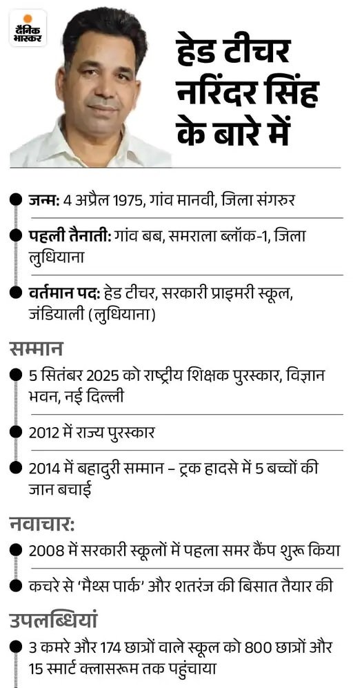 Sep 5, 2025 By Inder India News पंजाब-चंडीगढ़ के 2 टीचर राष्ट्रपति से सम्मानित: राष्ट्रीय पुरस्कार मिला, एक का 15 साल से 100% रिजल्ट, दूसरे ने सरकारी स्कूलों में लगाए AC – Punjab News