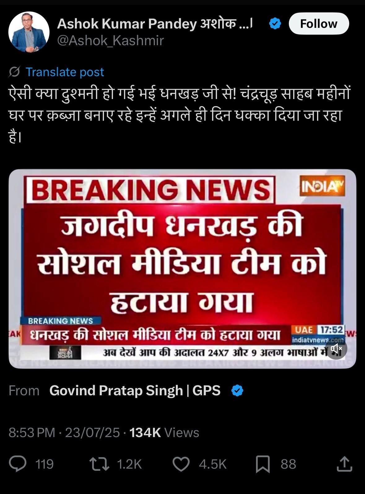 Jul 24, 2025 By Inder India News क्या उपराष्ट्रपति धनखड़ के ऑफिस को सील किया गया?: सोशल मीडिया पर दावा-घर खाली करने के लिए भी कहा गया; जानिए इस पोस्ट की सच्चाई – Jaipur News